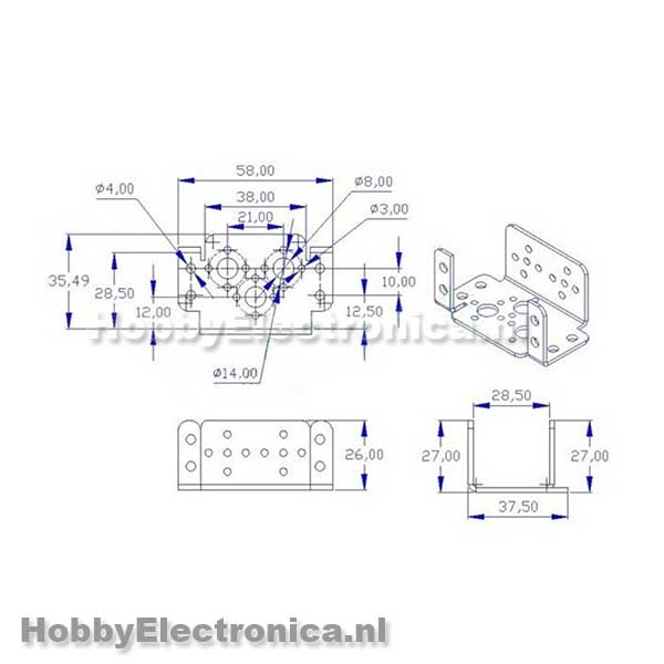 Servo houder aluminium bracket voor MG995, MG996R of S3003 servo’s.