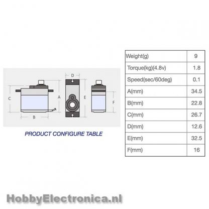 – Bedrijfsnelheid: 0.1sec /60degree (4.8v)