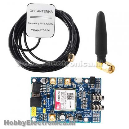 SIM808 GSM GPRS GPS module, geleverd met gps en gsm antenne.
