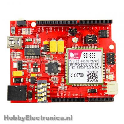 SIMduino UNO SIM808 GPRS GSM bord, combineert een Arduino Uno en sim808 module twee-in-één bord die veel kosten en ruimte kan sparen voor uw project. Stroomvoorziening kan via een DC-voeding of een 3,7 lithium batterij. Te gebruiken voor vele toepassingen, zoals een GPS tracker of ergens in een slimme woning.