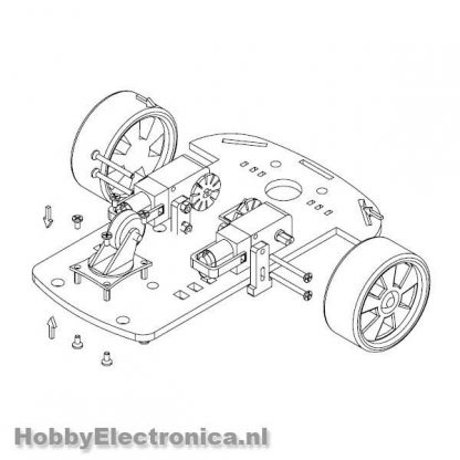 Smart car robot chassis 2WD platform kit bevat alle onderdelen voor het bouwen van een 2 wheel drive robot / smart car. Makkelijk in elkaar te zetten.