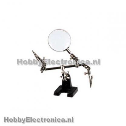 Soldeerhulp met loep van echt glas voor beter zicht. De poot van gietijzer zorgt voor een stevige stand. Ideaal voor werkzaamheden aan kleine printplaten.