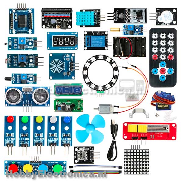 Starter kit voor MicroBit. Leuke starter kit voor de micro bit met voorbeeld projecten. Micro bit bord zit niet bij deze kit en moet los erbij worden aangeschaft. Goed om te leren programmeren met Python. Solderen is niet nodig, alle sensoren zijn aan te sluiten met dupont kabels.