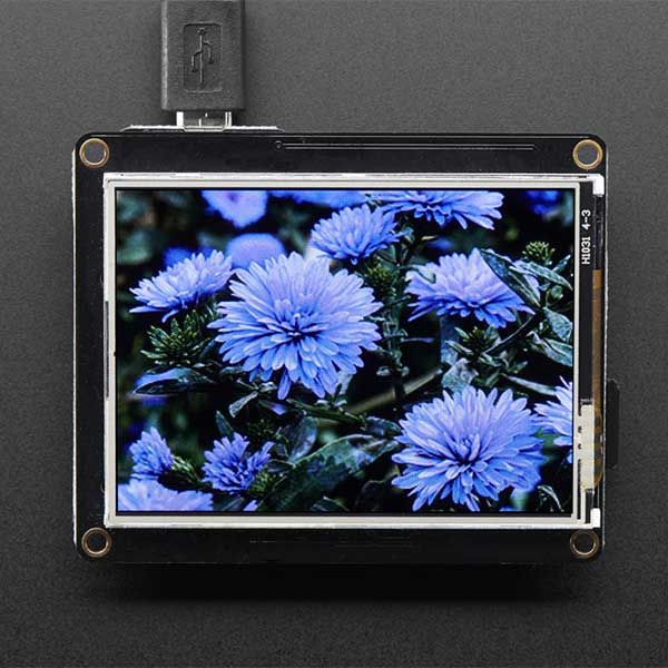 TFT FeatherWing 2.4″ 320×240 Touchscreen met ingebouwde microSD-kaartsocket. Dit TFT-scherm heeft een 2,4 ” diagonaal met een heldere 4 witte LED-achtergrondverlichting.U krijgt 240×320 pixels met individuele 16-bits kleurenpixelbesturing. Het heeft veel meer resolutie dan een zwart-wit 128×64 display. Als bonus wordt dit scherm geleverd met een resistief aanraakscherm dat al aan het apparaat is bevestigd, zodat u overal op het scherm aanrakingen kunt detecteren.