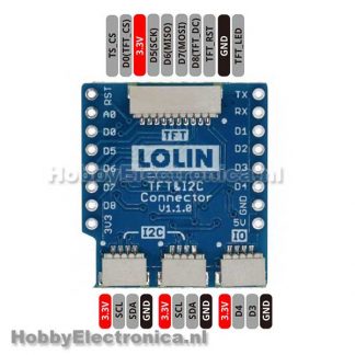 TFT I2C connector shield. 1x TFT, 2x I2C & 1x User IO Connector