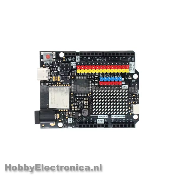 Uno R4 wifi compatibel is een geavanceerd microcontrollerbord dat zowel ingebouwde WiFi- als Bluetooth-functionaliteit combineert. Het bord behoudt de betrouwbaarheid van de Uno-serie en opent tegelijkertijd de deuren naar draadloze connectiviteit. Dit maakt het perfect voor het ontwikkelen van IoT-projecten, waardoor gebruikers gegevens kunnen verzamelen, apparaten op afstand kunnen bedienen en creatieve projecten kunnen realiseren die zowel WiFi- als Bluetooth mogelijkheden vereisen, plus een ingebouwde LED matrix voor visuele feedback.