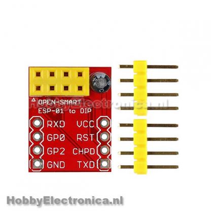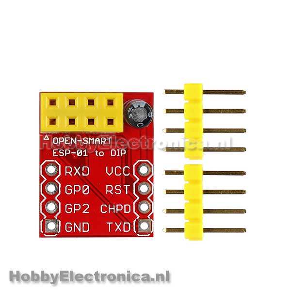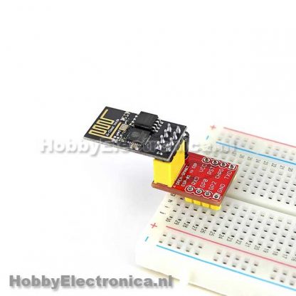ESP8266 ESP-01 Breadboard module. Maakt de veel gebruikte ESP8266 ESP-01 module geschikt voor een breadboard. Alle pinnen uitgebroken en gelabeld.