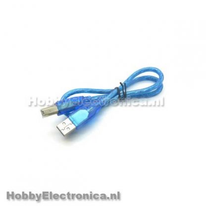 USB kabel A B. Deze korte USB-kabel is geschikt om je Arduino Uno of Arduino Mega op de PC aan te sluiten. De kabel levert hiermee ook de benodigde stroom voor je Arduino, dus je hebt geen externe voeding nodig.