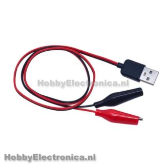 Usb male naar alligator clip voeding met krokodillenklemmen aan het ene uiteinde en een USB A mannelijk connector aan het andere. Dit zorgt voor een gemakkelijke stroomvoorziening via USB.