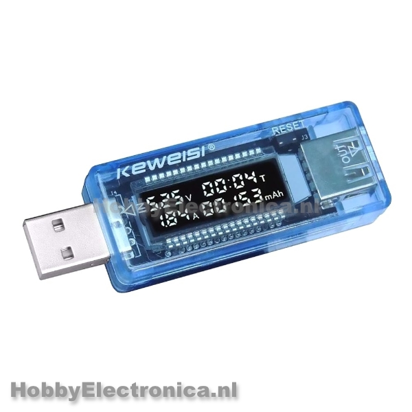 USB Spannings en stroommeter KWS-V20. De Mini USB Meter KWS-V20 is een compacte digitale spannings- en stroommeter voor het meten van USB-poorten (zoals PC, telefoonlader, autolader, powerbank, enz.). Het heldere display toont nauwkeurig spanning (4-20V), stroom (0-3A), capaciteit en laadtijd, zodat je eenvoudig de prestaties van je laadkabels en apparaten kunt controleren. Ideaal voor fabrieken, laboratoria en thuisgebruik. Plug & play, geen extra voeding nodig.