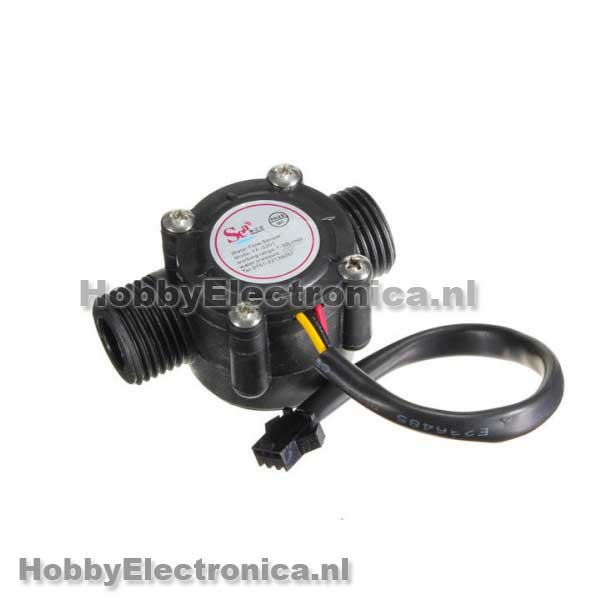 Water flow sensor / Hall flow sensor Module Water control 1-30L/min. Meet vloeistof / water-stroom voor uw zonne-energie, computer koeling of tuinier project met behulp van deze handige basic flowmeter. Deze sensor zit in lijn met uw waterleiding en maakt gebruik van een pinwheel sensor om te meten hoeveel vloeistof er doorheen gaat. Het pinwheel heeft een kleine magneet bevestigd en een Hall-effect magnetische sensor aan de andere kant van de plastic buis die kan meten hoeveel spins de pinwheel heeft gemaakt door de plastic wand.