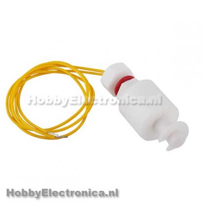Water level switch op basis van een reed switch en een drijver. Geeft een signaal als de reed sensor is bereikt. In de drijver zit een magneet die de reed switch activeerd.