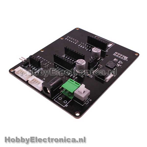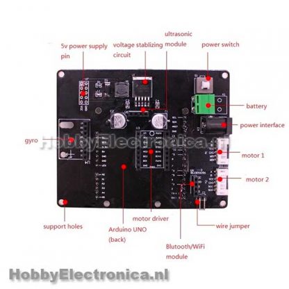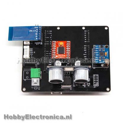 Zelfbalancerend ontwikkelingsbord voor een twee wiels robot. Werkt met een Arduino UNO en heeft header pinnen voor een motorstuurmodule, gyro-module, ultrasone module, Bluetooth / WiFi-module. Heeft 2 motor aansluitingen aan boord. Aan de onderkant kan de Arduino worden geplaatst. Levering is alleen het bord, er word geen arduino of andere sensoren meegeleverd.