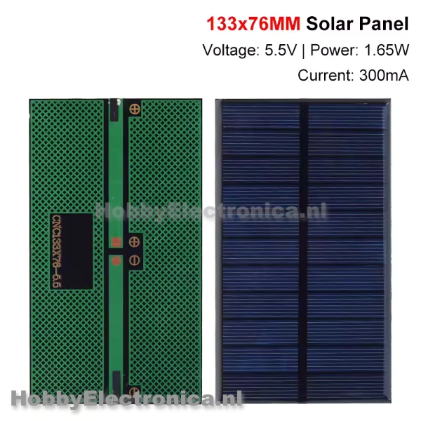 Zonnepaneel 300mA 5.5V specificaties: